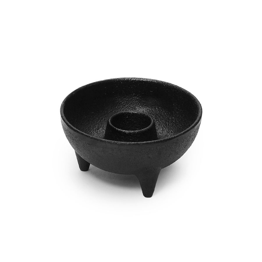 Svart ljushållare i gjutjärn, för stearinljus.