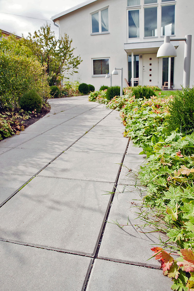 Betongplattor kan gärna kombineras med andra plattor och markstenar eller varför inte natursten för att skapa varierande och samtidigt funktionella ytor och miljöer. Komplettera med ränndalsplattor för avrinning vid stuprör och brunnar.
