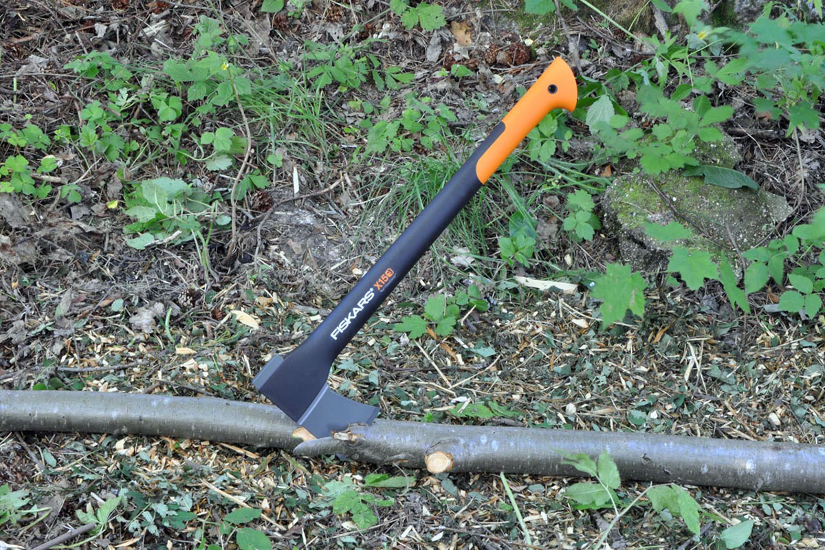 En mångsidig yxa från Fiskars för byggarbetsplatsen och för skogsarbeten med mera.