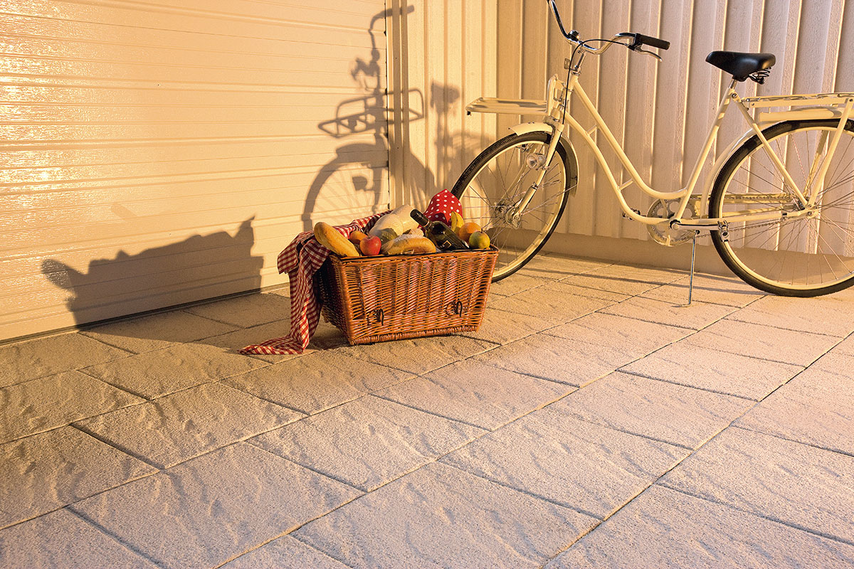 För trädgårdsbruk välj platta Vision i 40 mm tjocklek. 60 mm tål lite mer, men tänk på att de ljusa färgerna är mera känsliga för bildäck, oljespill mm.